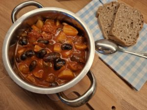 Jsem ráda, že jsem stihla sklidit poslední výpěstky, než začalo sněžit a mrznout. Teď už je zahrada pod peřinou a nevykutala bych z ní asi nic. Ze zahrady se stěhuji do kuchyně, měním holinky za kuchyňskou zástěru, zapaluji oheň a to, o co jsme celou sezónu pečovali, bude teď v podobě teplých polévek, pečených pokrmů, pickles, kaší a dalších podpůrných jídel posilovat nás.